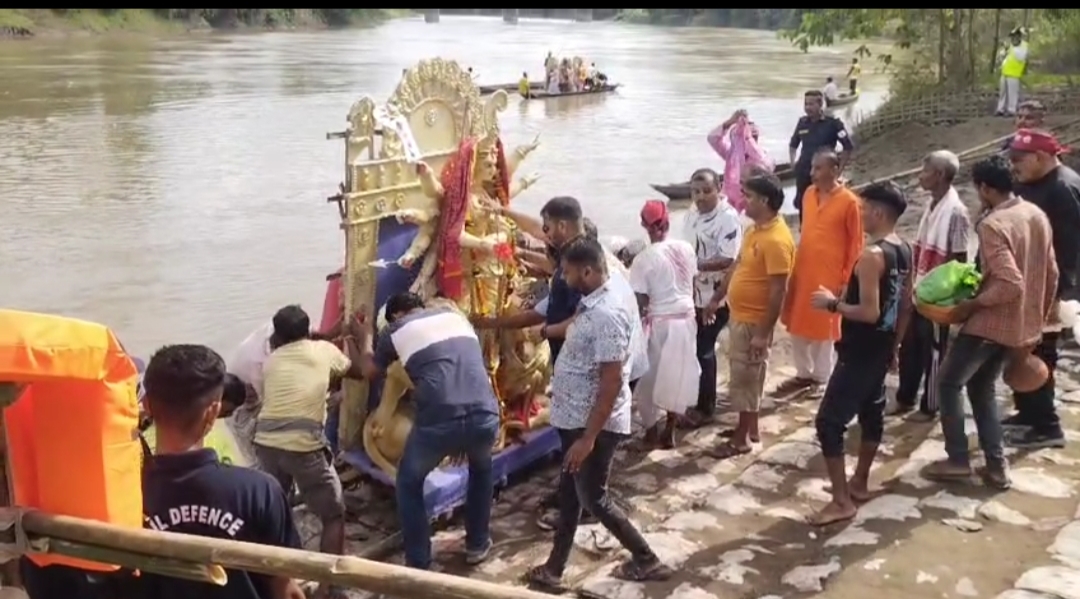 নিউজডেক্স,২অক্টোবৰ,২০২৫ : আজি নাজিৰা নগৰৰ মাজমজিয়াত থকা বশিষ্ট গংগা খ্যাত দিখৌনৈৰ ঘাটত বিসৰ্জন দিয়া হয় দেৱী দূৰ্গাৰ প্ৰতিমাৰ । প্ৰশাসনে প্ৰতিমা বিসৰ্জনৰ ক্ষেত্ৰত বান্ধি দিয়া নিয়মাৱলী পালন কৰি সকলো আয়োজক সমিতিয়ে বিসৰ্জন দিয়ে প্ৰতিমা সমুহ । প্ৰতিমা বিসৰ্জনৰ সময়ত যাতে কোনো ধৰণৰ অপ্ৰীতিকৰ পৰিস্থিতিৰ সৃষ্টি নহয় তাৰ প্ৰতি লক্ষ্য ৰাখি প্ৰশাসনৰ তৰফৰ পৰা নাজিৰাৰ দিখৌ নৈৰ পাৰ ঘাটত যথেষ্ট সংখ্যক আৰক্ষী ,এছ ডি আৰ এফ, আৰু চিভিল ডিফেন্সৰ লোক মোতায়ন কৰা হয় ।